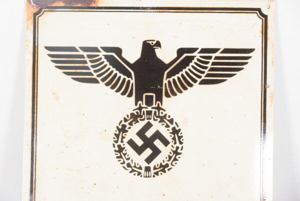 Repro “museale” di una targa smaltata da sede/sezione locale NSDAP, dimensioni cm 50×40. Già “antichizzata” in patina.