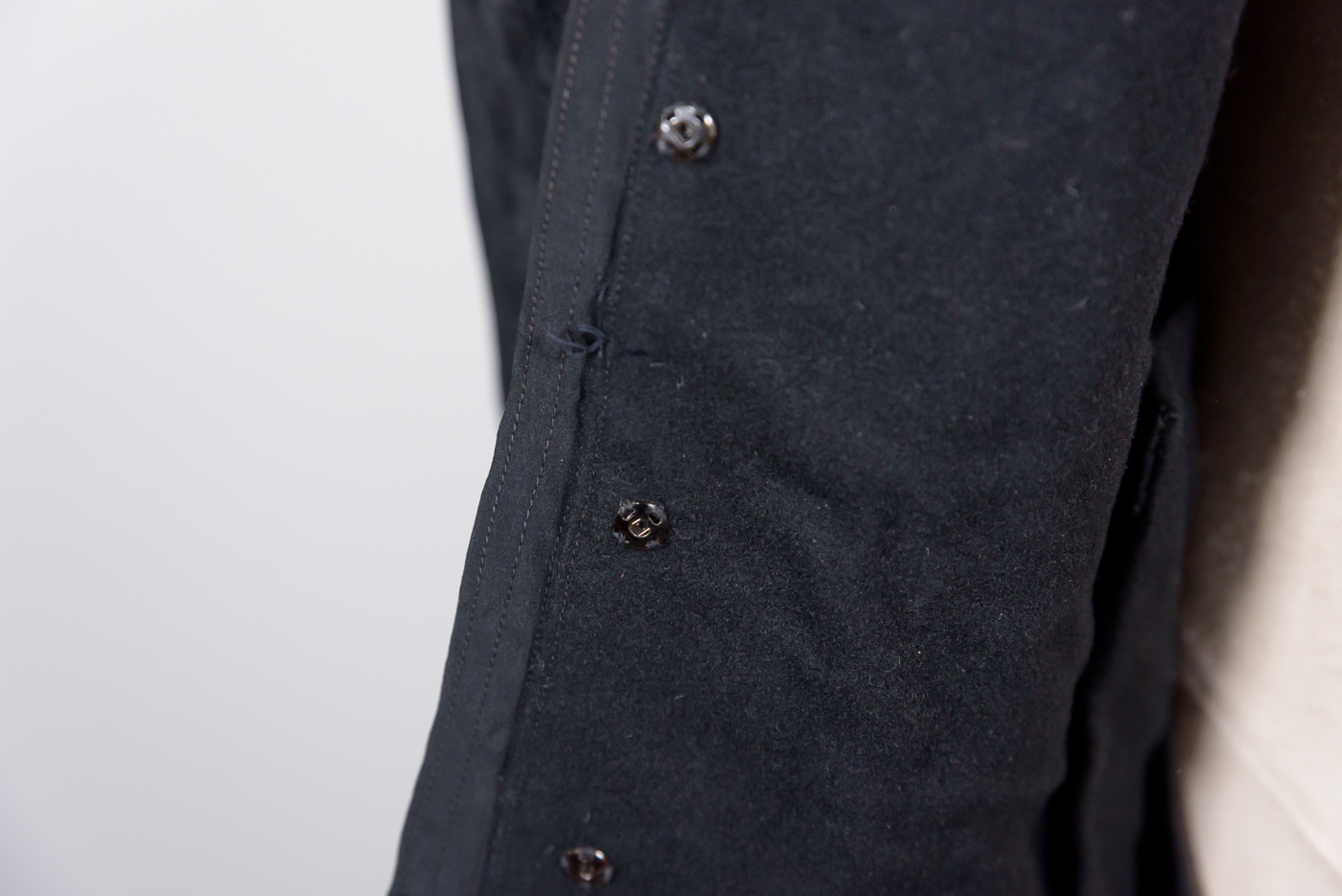 Ottima giacca “Sahariana” nera, versione femminile del PNF, con bottoniera a sinistra, personalizzata con automatici nella parte bassa della parte anteriore, completa di spalline amovibili e cintura in vita. Usata, buono stato di conservazione.