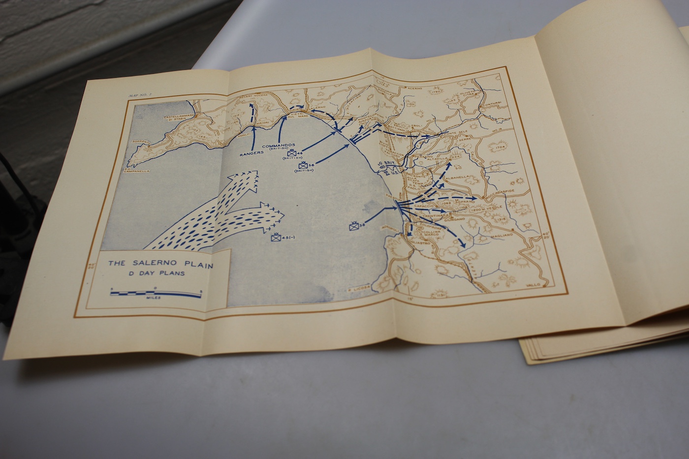 “Salerno” – War department 1943. Libro illustrato a cura del Military Intelligence Division, corredato di mappe, sullo sbarco di Salerno e successiva avanzata. Buono stato di conservazione.