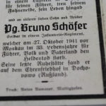Interessante sterbebilder di due fratelli, uno Uscha – SS, decorato con Croci per 10 e 15 anni NSDAP e Ostmedaille, caduto in Slesia nel 1942 e l’altro vicino a Mosca verso la fine del 1941. Buono stato di conservazione.