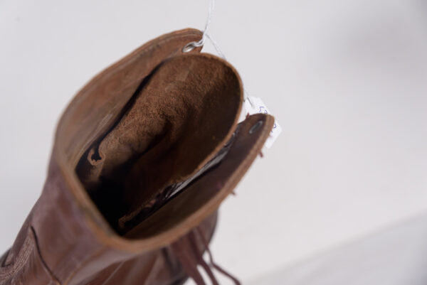 Paio di scarponi M.48 US Army, usati nella guerra in Corea, spesso vengono confusi con il modello della Seconda Guerra Mondiale, ma sono leggermente differenti. Suola marcata R.E .Goodrich, lunghezza cm 29. Mai stati usati, fondo di magazzino, complete di lacci.