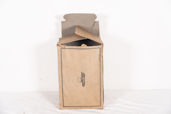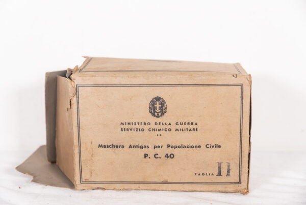 Scatola in cartone per maschera antigas PC-40. Usata, buono stato di conservazione, manca una patta.