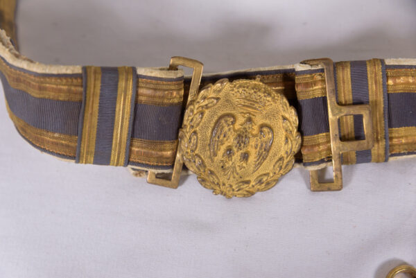 Set per Ufficiale Inferiore della Regia Aeronautica della Seconda Guerra Mondiale, composto da cinturone da parata completo di fibbia e attacchi per sciabola e cordone da parata con puntali metallici. Buono stato di conservazione.
