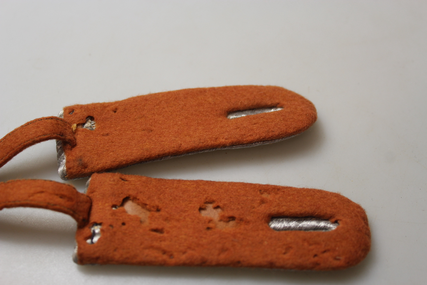 Coppia di spalline da Sottotenente delle Trasmissioni della Luftwaffe, versione amovibili con passante. Usate, qualche piccolo problema nella parte interna, vedi foto in dettaglio.