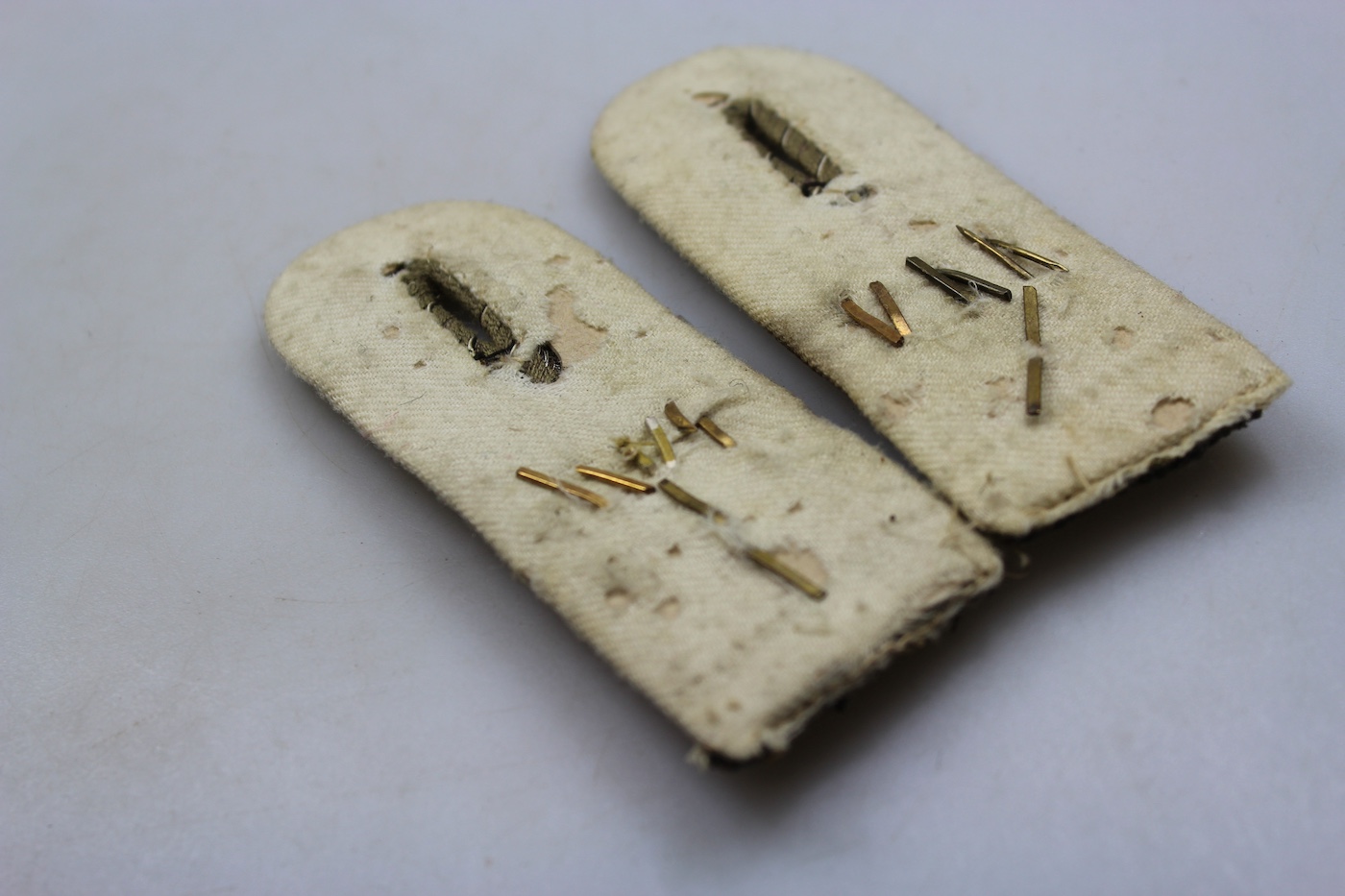 Coppia di spalline da Leutnant del 610° reggimento Fanteria, dell’Esercito Imperiale Tedesco della Prima Guerra Mondiale, versione fissa, da cucire nel giro manica. Usate, buono stato di conservazione.