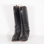 Caratteristici stivali di Cavalleria, fatti in cuoio nero con doppia suola, caratteristica delle calzature militari Tedesche di entrambe le guerre Mondiali, tacco ferrato e completi di attacchi per speroni. Lunghezza cm 29. Usati, buono stato di conservazione.