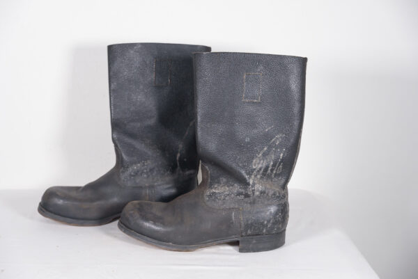 Stivali da truppa Bundeswehr, modello esatto all’analogo della Seconda Guerra Mondiale, fatto praticamente identico sia come costruzione, che come materiali, lunghezza cm 32. Usato, buono stato di conservazione, perfetto per reenactment.