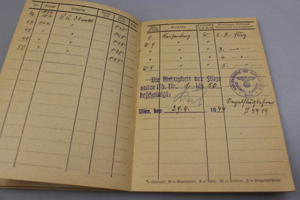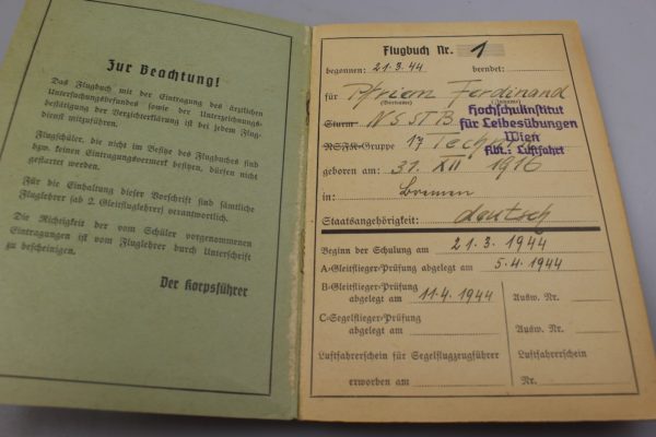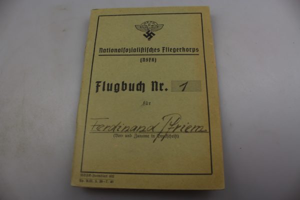 Flugbuch, libro personale di volo appartenuto ad un iscritto al NSFK. Completo di foto e con riportati i voli sostenuti. Buono stato di conservazione.