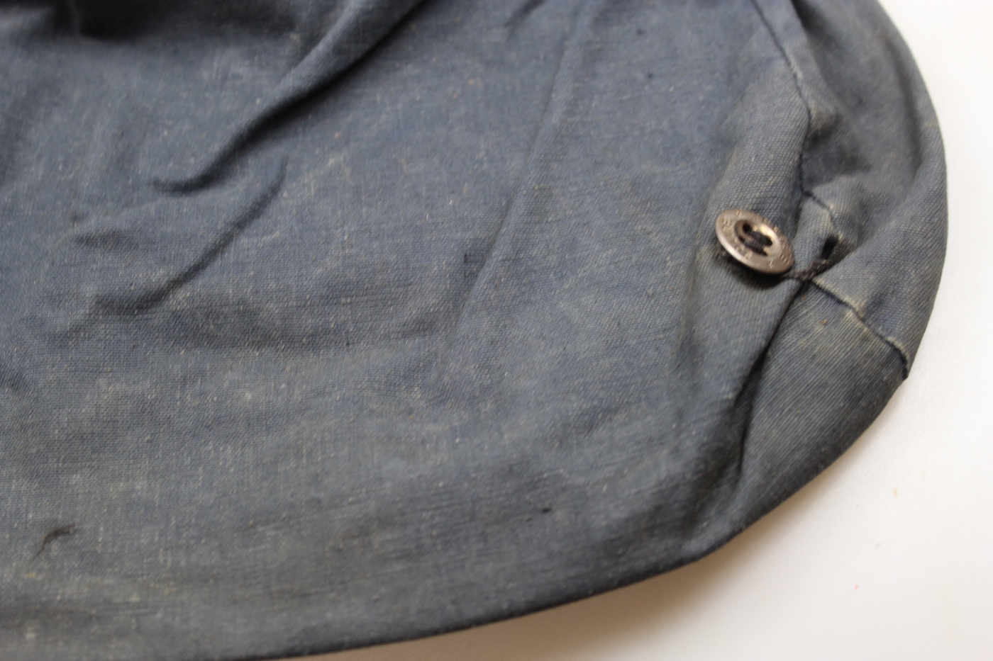 Tascapane Flak Helfer Hitler Jugend, fatto in robusta tela ti cotone in colorazione blaugrau, cinghia tracolla fissa, dimensioni leggermente più piccole rispetto al modello standard. Usato, buono stato di conservazione.
