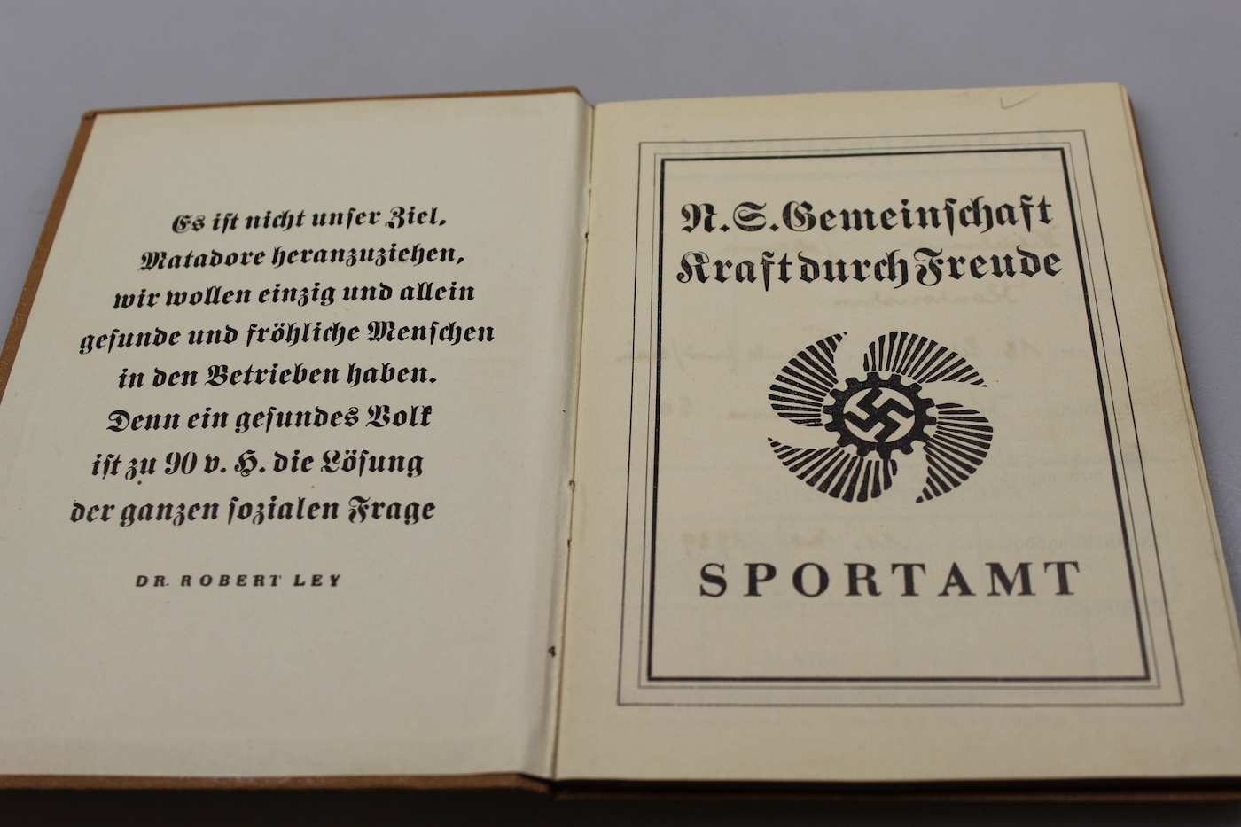 Tessera Deutsche Arbeits Front – Jahres Sportkarte, sezione ricreativa/sportiva del DAF, N.S. Gemeinschaft – Kraft Durch Freude. Usata, buono stato di conservazione.
