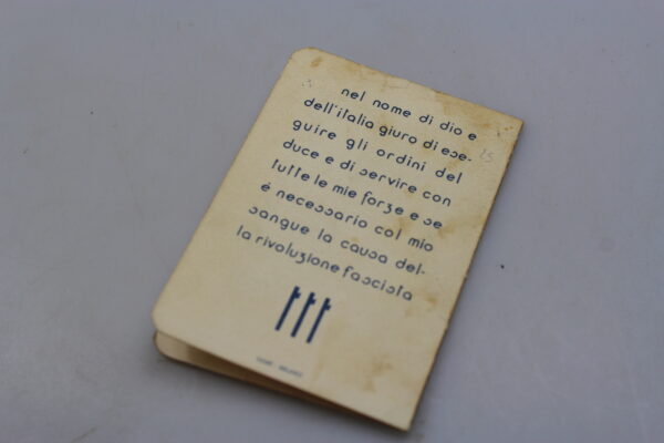 Tessera da iscritta all’OB “Balilla” per l’anno XV° E.F, sezione di Catania, completa di foto. Buono stato di conservazione.