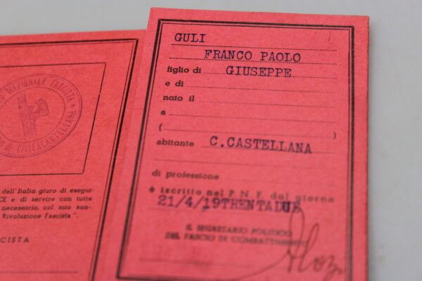 Tessera iscritto PNF per il XVIII° anno E.F. per la sezione di Civita Castellana (VT). Poco usata, buono stato di conservazione.
