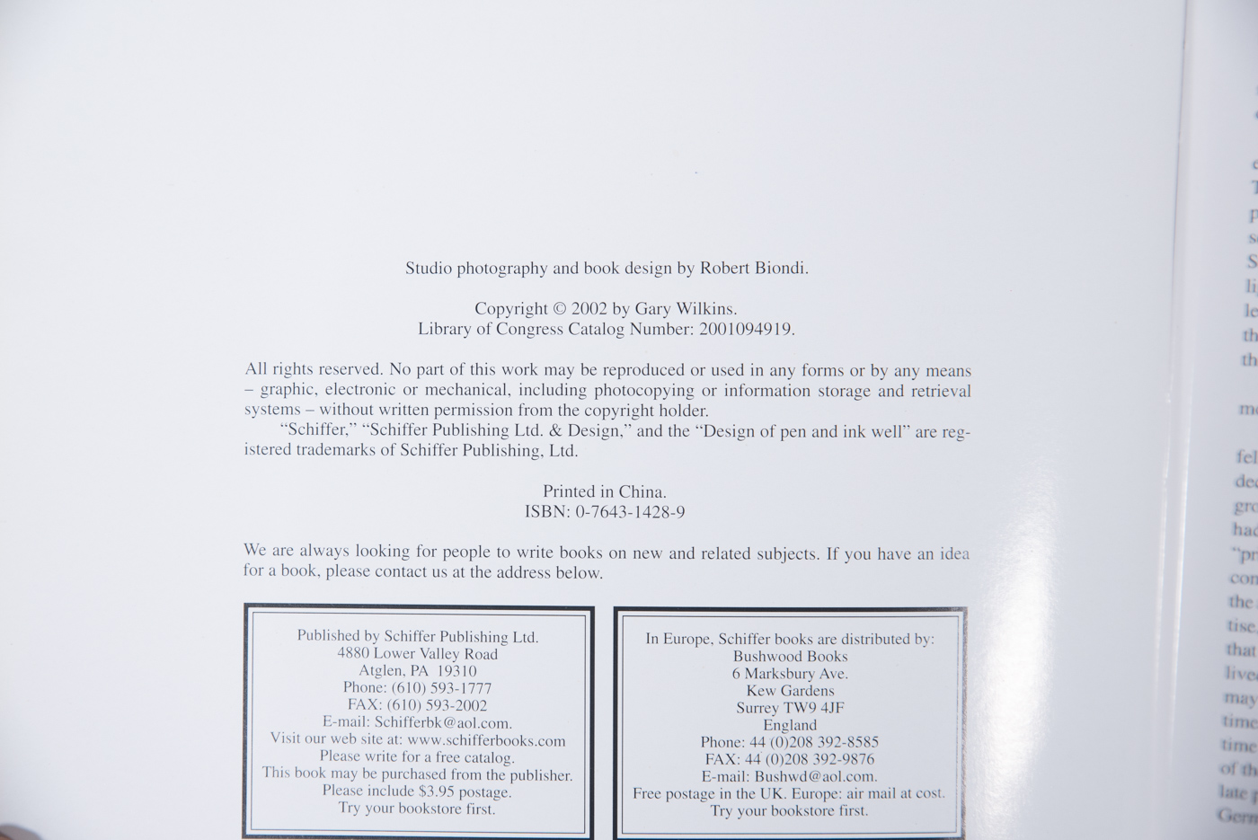 “The collector’s guide to cloth Third Reich Military Headgear” G.Wilkins, Schiffer Publishing Ltd, Atglen (2001). Ottimo libro fotografico, dedicato al collezionismo dei copricapi del terzo Reich. Completo di sovracopertina. Usato, buono stato di conservazione.