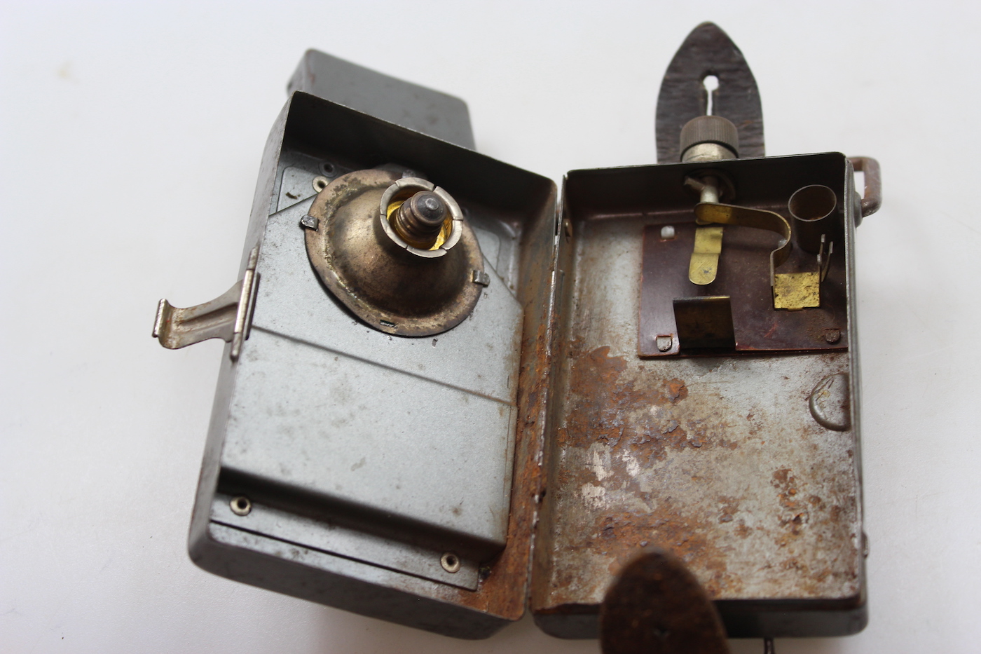 Torcia segnalazione Flashnight “Wonder”, con filtri colorati e attacco in pelle per bottone della tasca superiore sinistra della giacca, Francese anni 40′, impiegata anche dalla Wehrmacht dopo l’occupazione. Usata, buono stato di conservazione.