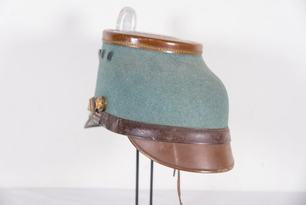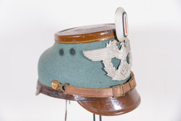 Tschako della Gendarmerie del periodo della Seconda Guerra Mondiale, completo dei suoi corretti attributi, produzione d’intendenza. Usato, buono stato di conservazione.