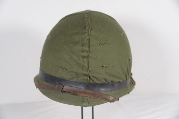 Elmetto M1 US Army a “ganci mobili”, in piena configurazione Korea, presente liner completo in tutte le sue componenti, completo anche di telino mimetico completamente verde. Usato, buono stato di conservazione.