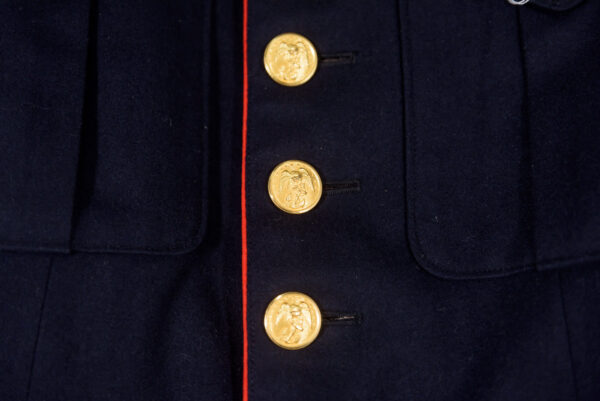 Ottima giacca da parata “Blue Dress” da Caporale USMC, produzione anni 60′, completa di cinturone adeguato e dei suoi corretti attributi. Poco usata, impeccabile stato di conservazione.