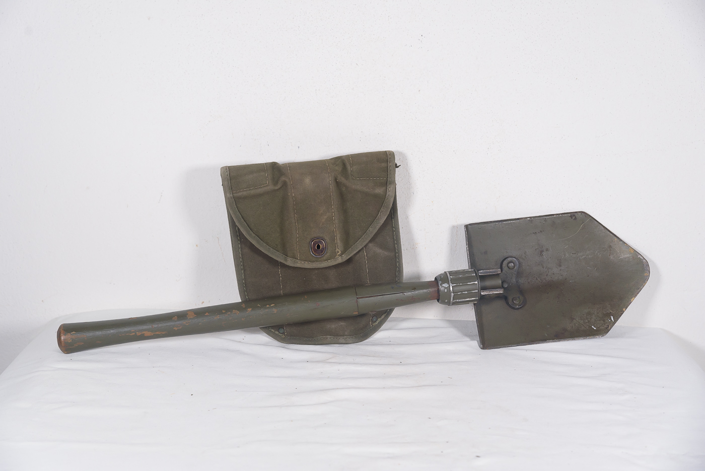 Vanghetto pieghevole US Army anni 50′, guerra in Korea, completo di porta pala fatto in robusta canapa in colorazione tipica “Forest green”. Usato, buono stato di conservazione, non sono visibili marcature.