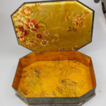 Interessante porta gioielli in metallo raffigurante una altana per sentinelle e sullo sfondo le Alpi Bavaresi, fatto nel 1947 da un prigioniero Tedesco internato dagli Alleati nel campo di prigionia di Wolfsberg, prigione nota per aver “ospitato” solo soldati appartenuti alle Waffen SS. Buono lo stato di conservazione, bella patina.