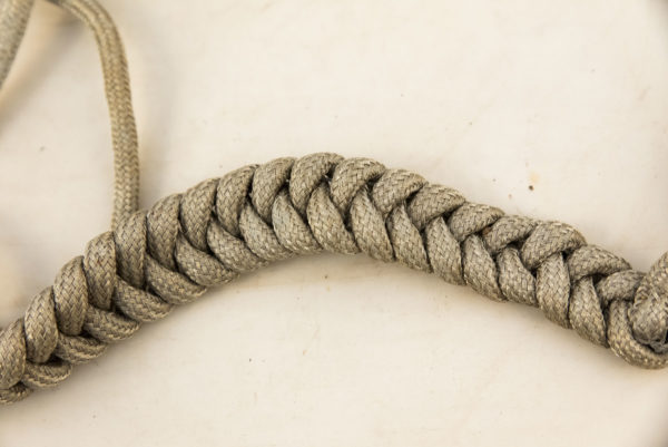 Elegante cordone da parata per Ufficiale della Wehrmacht, versione con puntali in metallo. Poco usato, buono stato di conservazione.