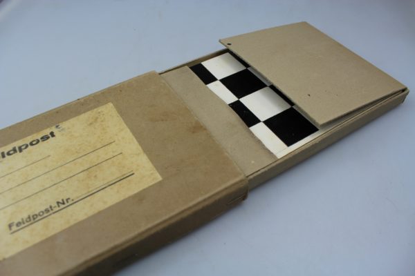 Gioco della Dama e Scacchi, nell’apposito pacchetto Feldpost, che le famiglie usavano per mandare generi di conforto ai propri cari impegnati al Fronte. Mint condition, completo, mai usato.