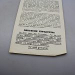 Interessante volantino di propaganda anti.-nazi, lanciato durante i raid aerei degli sulle città Tedesche, in cui si metteva a reale conoscenza, la popolazione civile dei quantitativi di bombe sganciate dagli Alleati sul suolo Tedesco. Buono stato di conservazione.