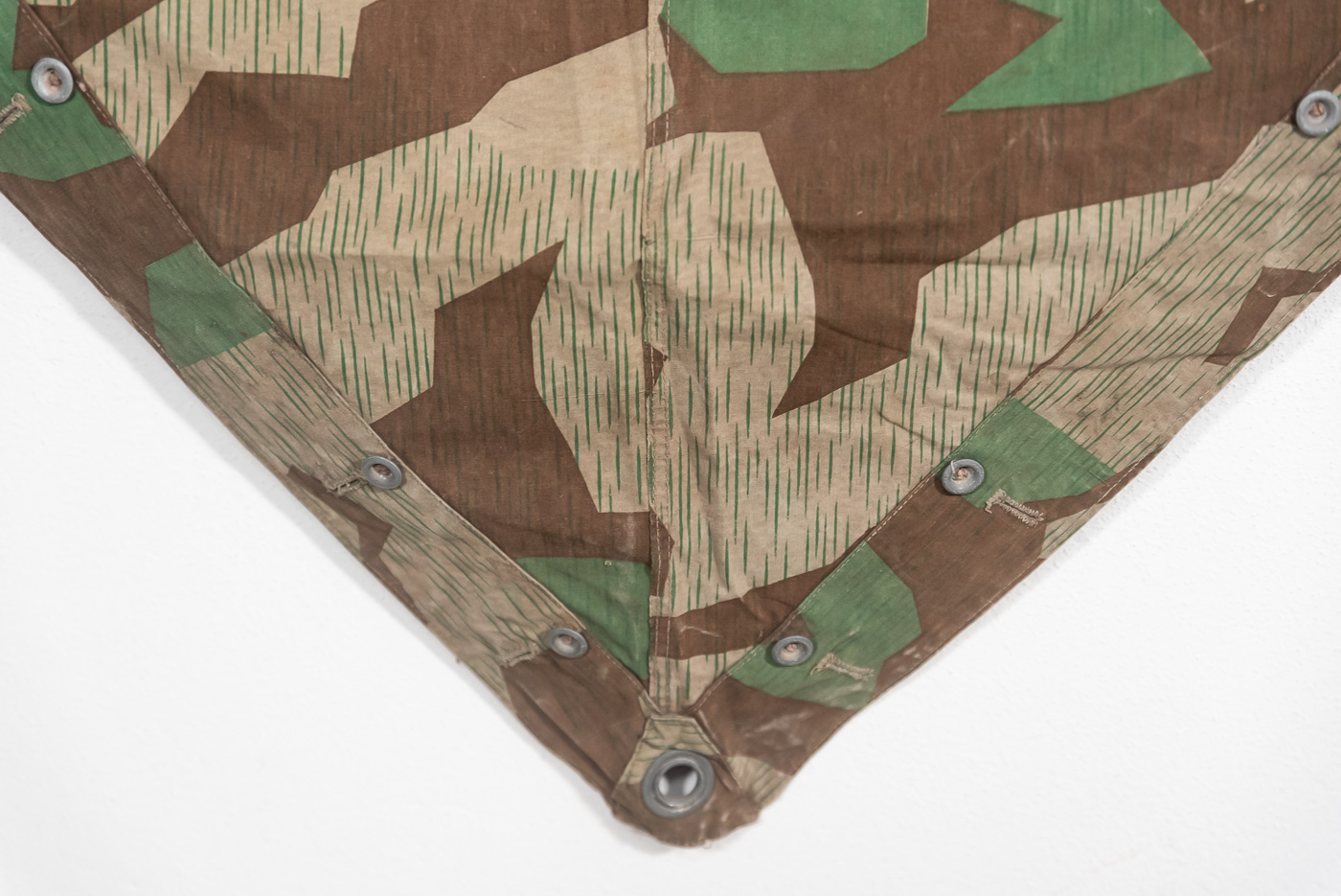 Zeltbahn, telo tenda/poncho individuale, mimetico Splittertarn reversibile con due cromie differenti di tono di colore. Usato molto buono lo stato di conservazione, colori brillanti.