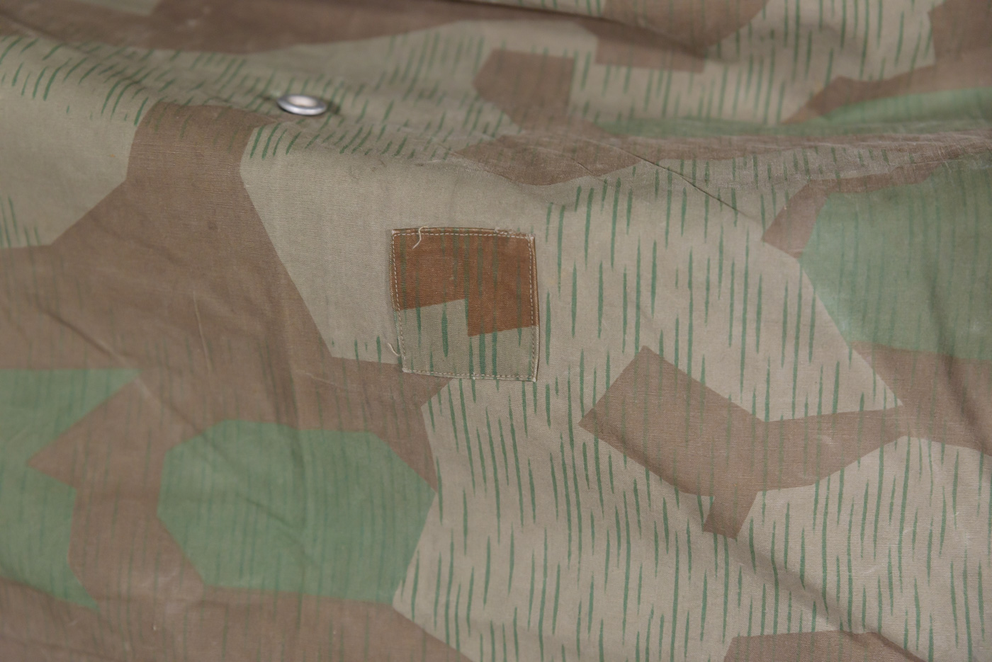 Zeltbahn, telo tenda/poncho individuale, mimetico Splittertarn reversibile con due cromie leggermente differenti di tono di colore tra di loro. Usato, buono stato di conservazione.