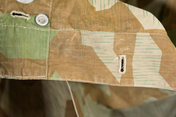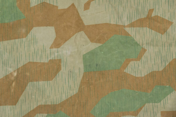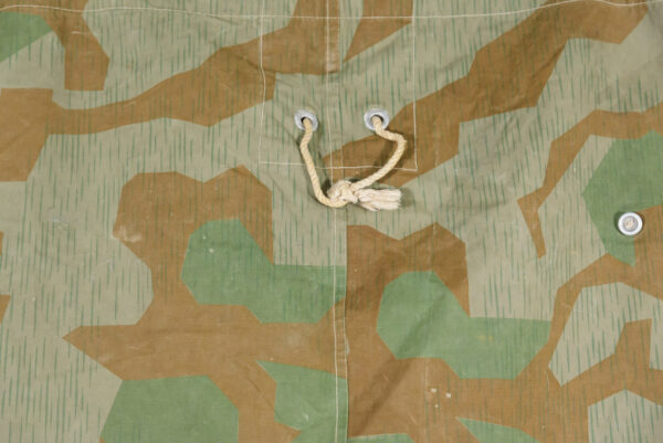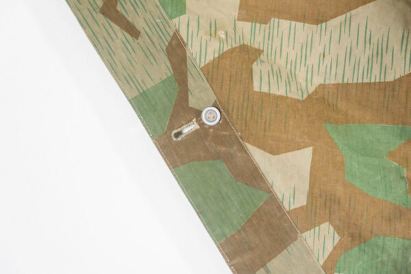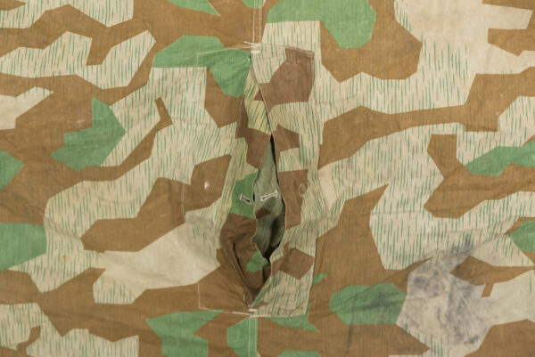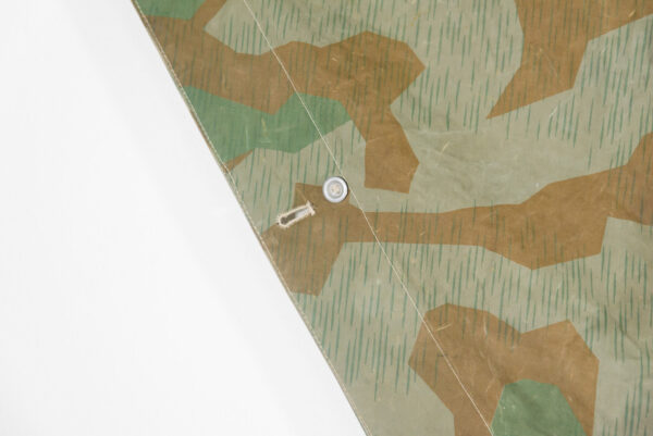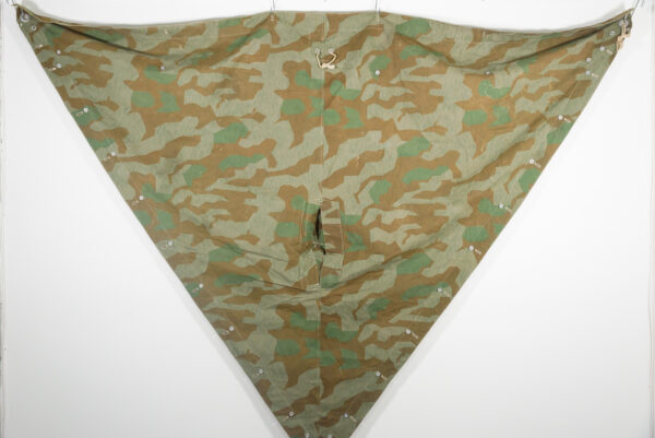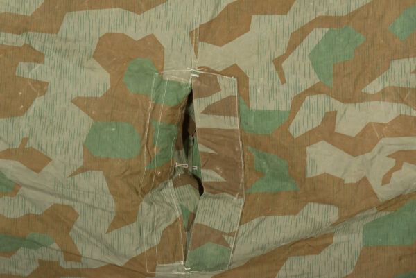 Zeltbahn, telo tenda/poncho individuale, mimetico Splittertarn reversibile con due cromie differenti di tono di colore. Marcato con produttore e datato 1938. Usato, “vissuto”, buono stato di conservazione, bella patina.