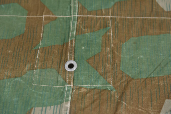 Zeltbahn, telo tenda/poncho individuale, mimetico Splittertarn reversibile con due cromie differenti di tono di colore. Non sono visibili marcature. Usato poco, buono lo stato di conservazione, colori brillanti.
